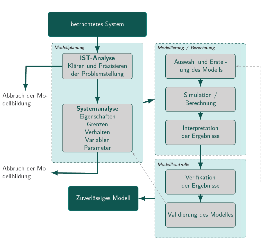 Jedes Modell stellt lediglich eine mehr oder weniger genaue Annäherung an das Original (z.B. ein reales System) dar. Daher ist es nach der Modellentwicklung notwendig, zu überprüfen, ob das Modell mit seinen Idealisierungen das zu untersuchende Original ausreichend genau abbildet. Die Verifikation untersucht, ob sich das Modell grundsätzlich plausibel verhält, und bezieht sich dabei auf das Modellverhalten, unabhängig von Vergleichen mit einem konkreten Original. Die Modellverifikation betrifft somit die Überprüfung der Plausibilität des Modellverhaltens an sich, also für „fiktive“ Originale. Die Validierung hingegen liefert eine Aussage darüber, ob das erstellte Modell konkrete Originale hinreichend beschreibt und in welchem Bereich das Modell gültig ist (Grenzen des Modells).
