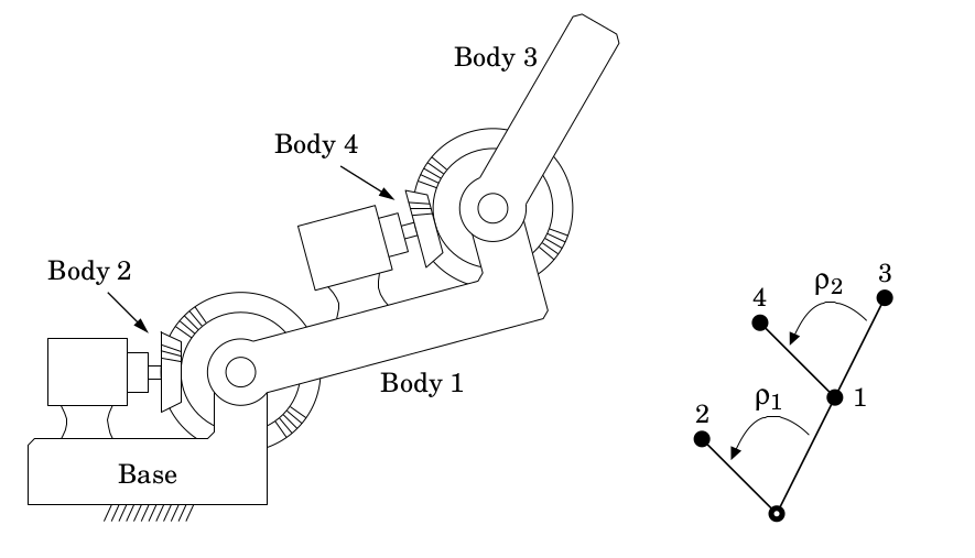 Abb. 2.1 Mehrkörperproblem eines zweiarmigen Roboters nach [Featherstone, 2014]#