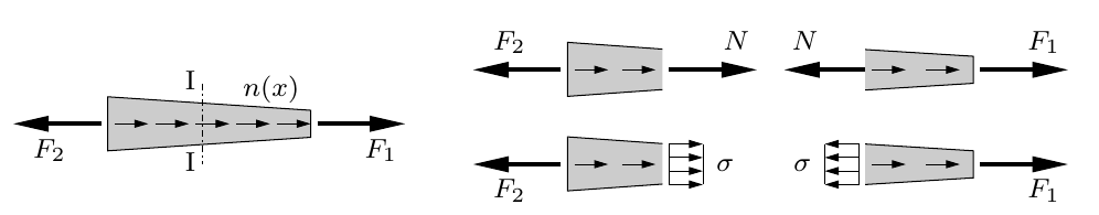 Abb. 2.11 Kräftegleichgewicht und Spannungen am geraden Stab nach [Wriggers et al., 2006]#