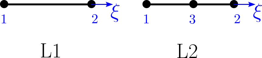 Abb. 8.3 1D-Elemente mit linearer und quadratischer Ansatzfunktion#