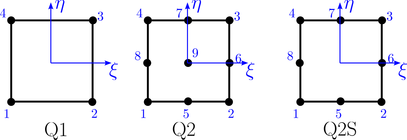 Abb. 8.5 2D-Rechteck-Elemente mit linearer und quadratischer Ansatzfunktion#