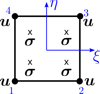 Gaußpunkte (dann zu Knoten extrapoliert) |